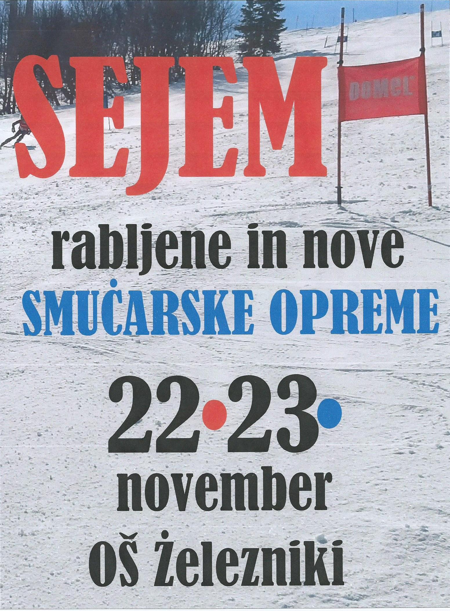 V soboto 22.11.2014, bo v večnamenskem prostoru sejem rabljene smučarske opreme. Torej vsi, ki imate kaj smučarskega za prodati ali kupiti, vljudno vabljeni. Na sejmu bo tudi ogromna izbira rabljene smučarske opreme.