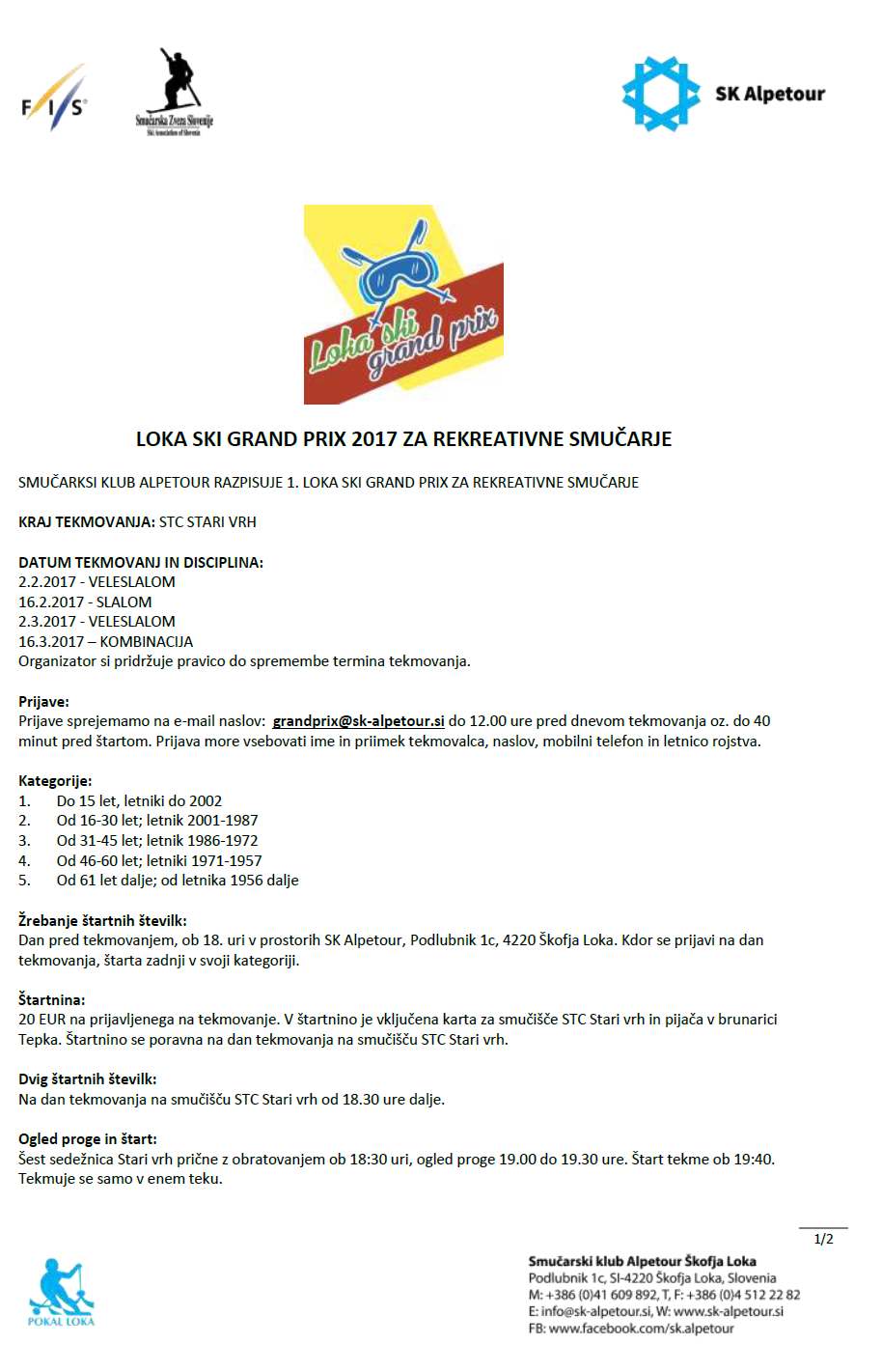 Smučarski klub Alpetour vabi na rekreativno tekmovanje. Vabilo in razpis najdete v nadaljevanju