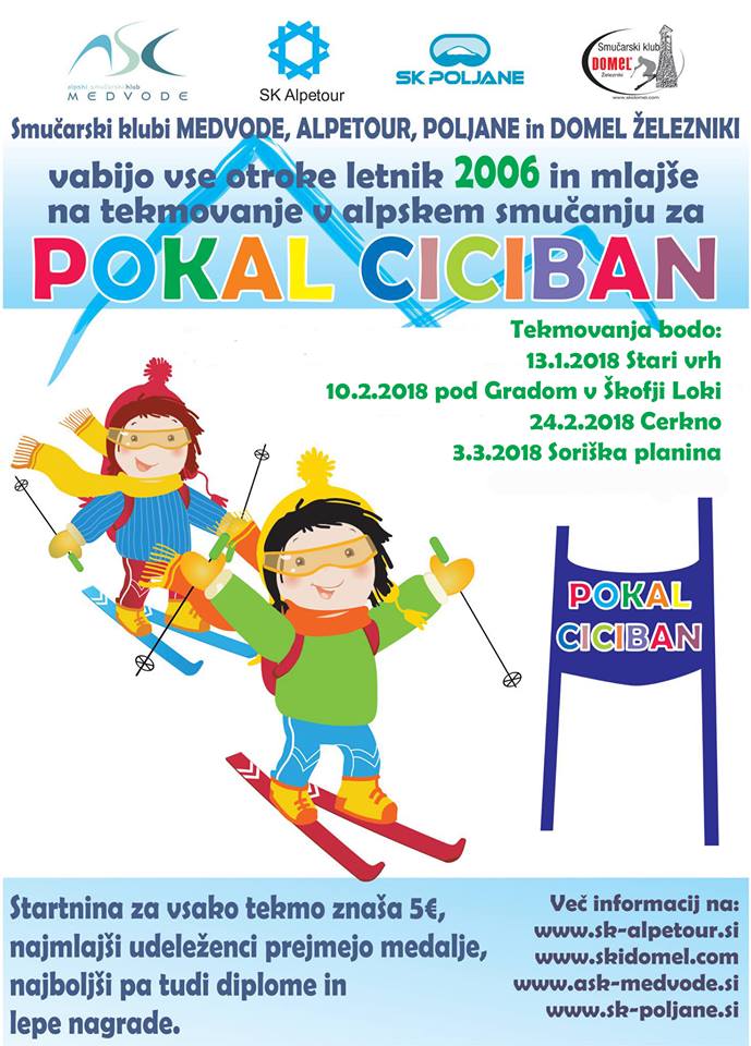Prvo tekmo za Pokal Ciciban so organizirali člani SK Alpetour. Ker na smučišču Stari vrh ni dovolj snega, so tekmo prestavili na Soriško planino. Najmlajši smučarji Alpske šole in cicibani našega kluba so dosegli zelo dobre oziroma odlične rezultate :-)